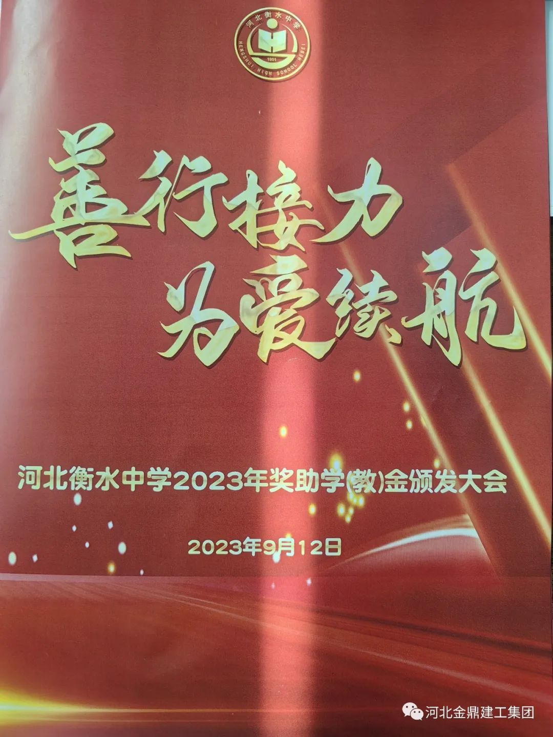 金鼎集團(tuán)祝賀河北衡水中學(xué)2023年獎(jiǎng)學(xué)金助學(xué)(教)金頒獎(jiǎng)大會(huì)圓滿結(jié)束